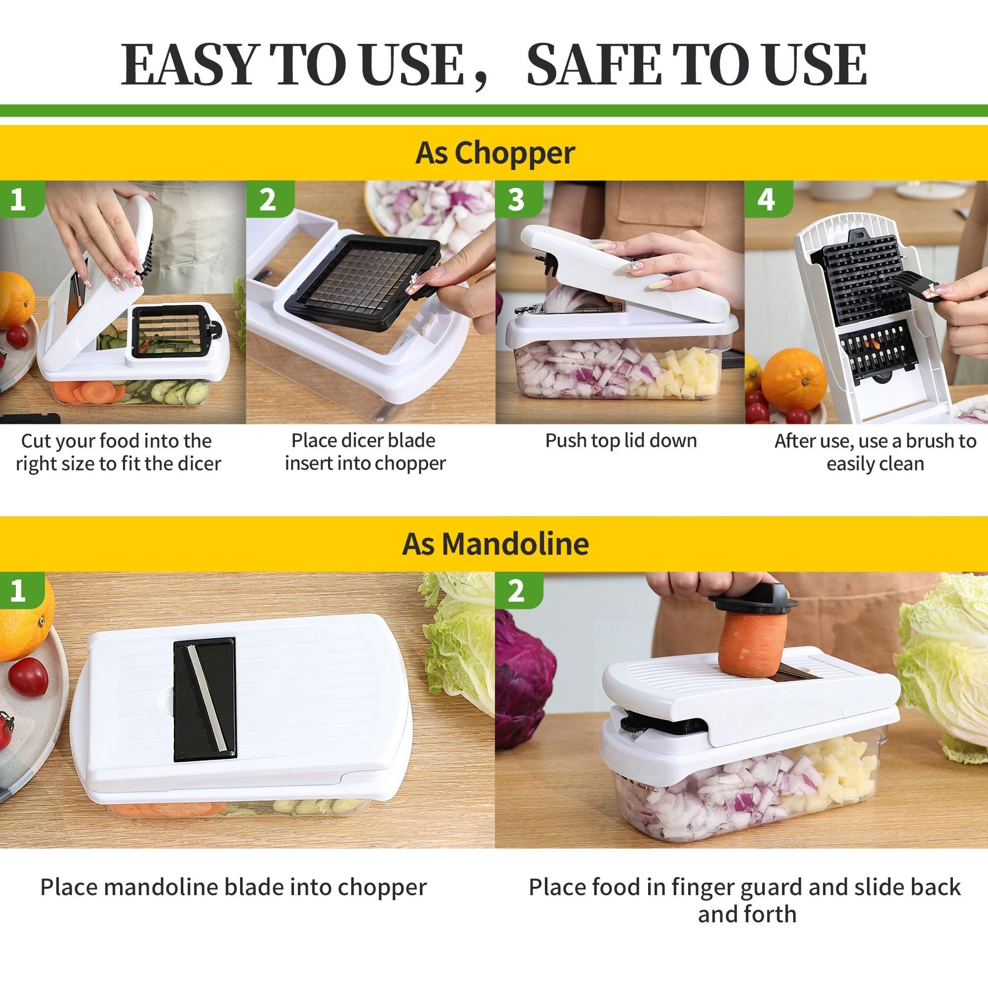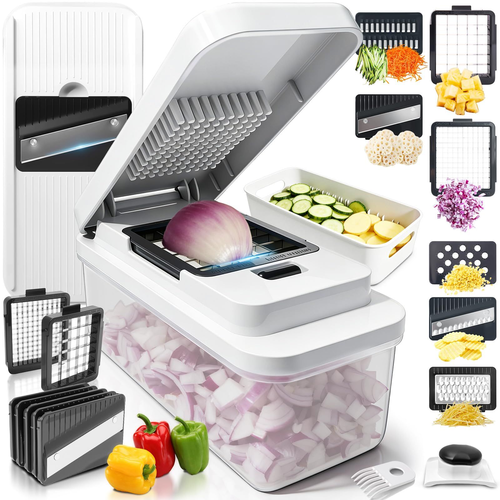 🔥Hot Seller🔥 COD! KIOOM Vegetable Chopper with Container – 15 in 1 Onion Chopper Dicer & Vegetable Dicer – Manual Veggie Slicer, Mandoline Slicer, Potato Cutter &...